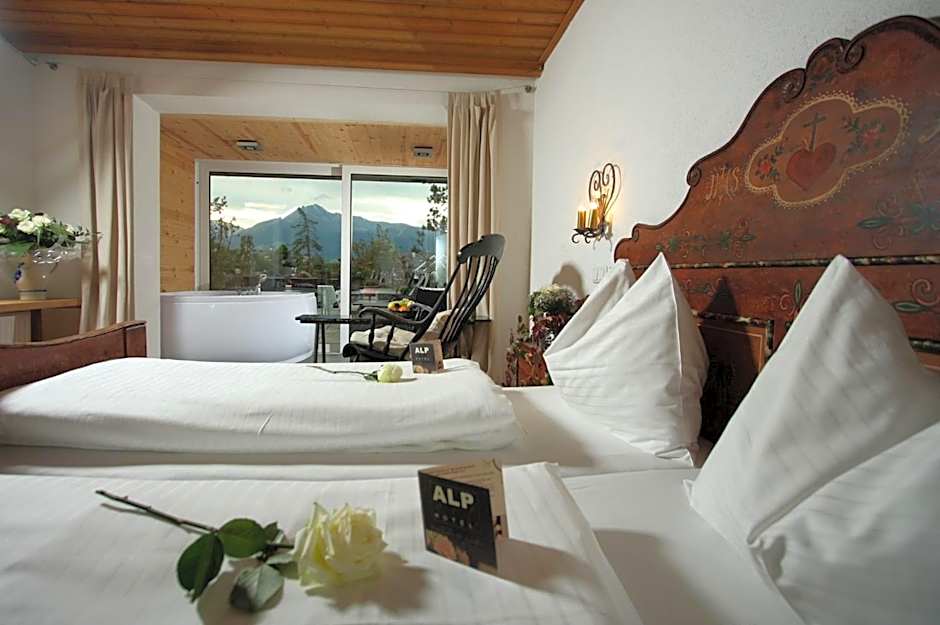 Spacious and modern Alpine-style rooms with a bath, seating area and satellite TV.